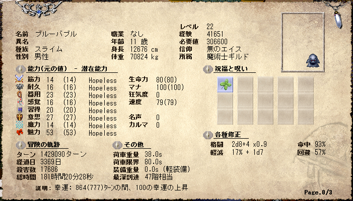 (これに最初に選んだ武器によってステが足されるのでこの状態で保存されることはないし、キーブレード装備しなければならないのでこんなステではないのだけれど)(毎回剣を選ぶんだけどLv1で最善の選択ってなんなんだろうね)